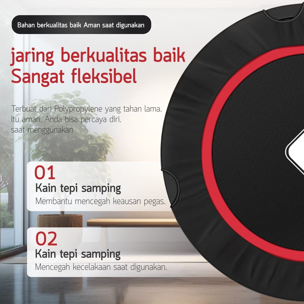 ⭐Karet Anti-Slip & Peredam Suara: Kaki trampolin dilapisi karet anti-selip yang menjamin cengkeraman kuat di berbagai permukaan lantai. Lapisan karet lembut ini juga sangat efektif mengurangi kebisingan dan getaran, sehingga tidak menimbulkan suara berisik.