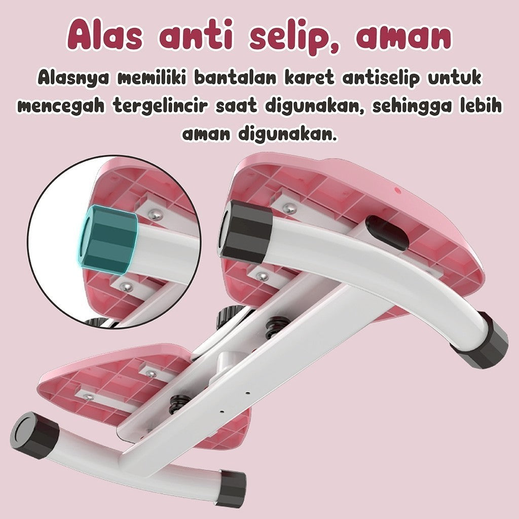 Material berkualitas tinggi membuat alat ini kuat, tahan lama, dan mampu menahan beban hingga 150 kg. Permukaan pijakan didesain anti selip sehingga lebih aman digunakan. Cocok untuk Anda yang ingin menjaga kebugaran, mengecilkan perut, atau sekadar berolahraga ringan di rumah.